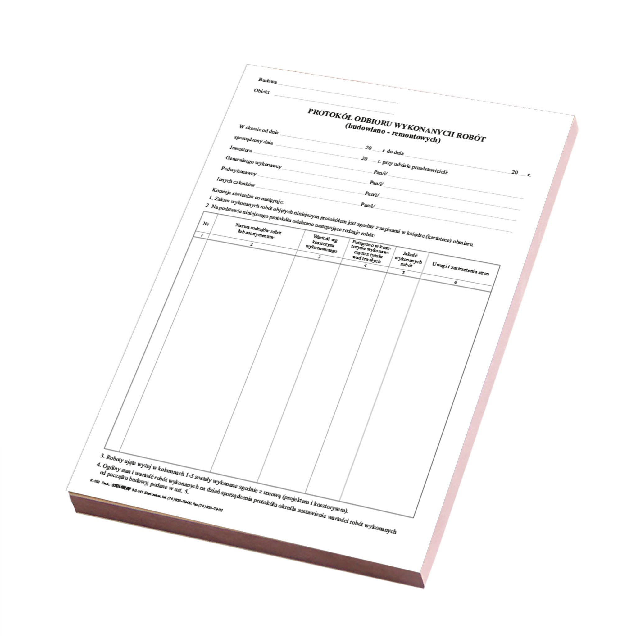K-163 Protokół odbioru wykonanych robót A4 - STOLGRAF