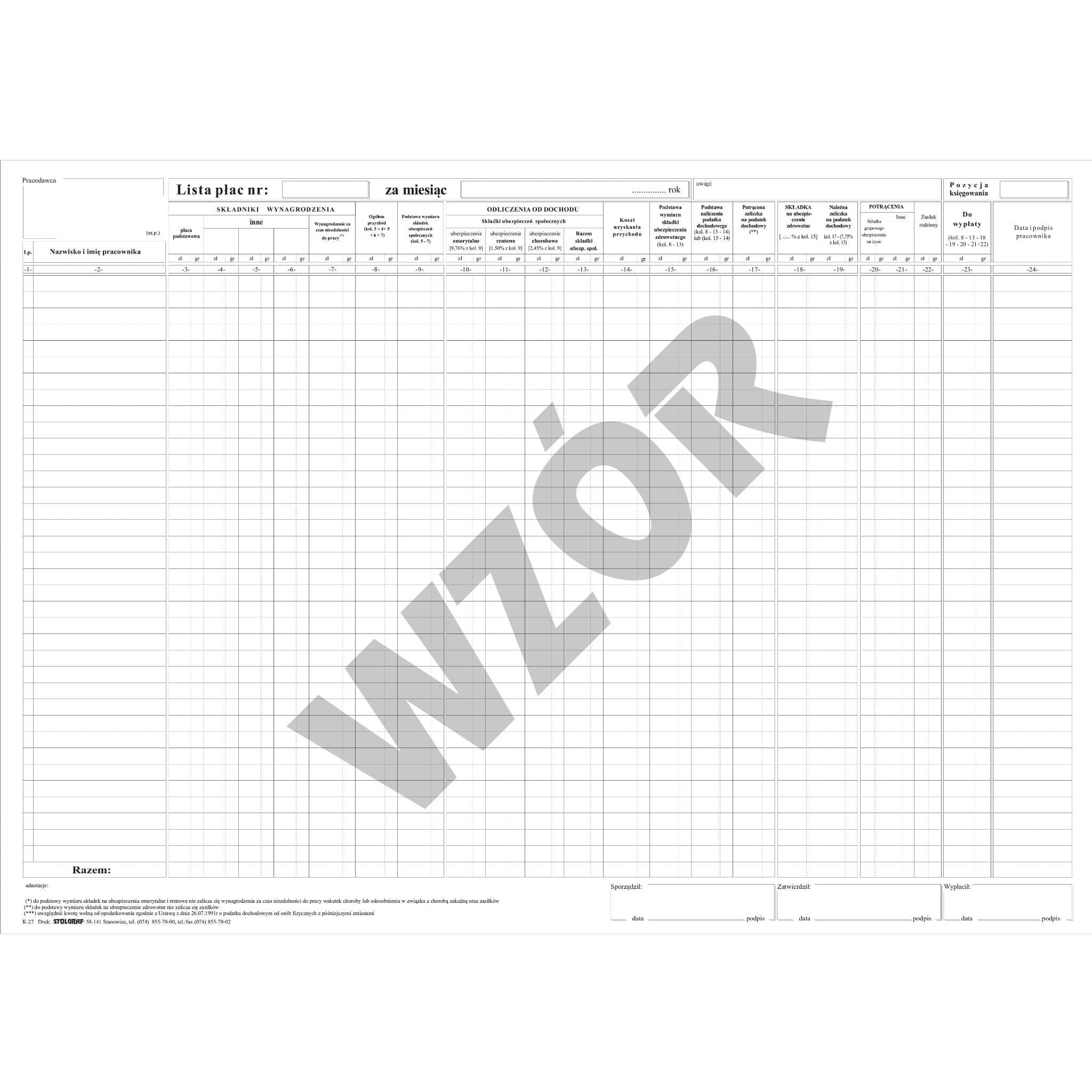 K-27 Lista płac A3 uniwersalna - STOLGRAF