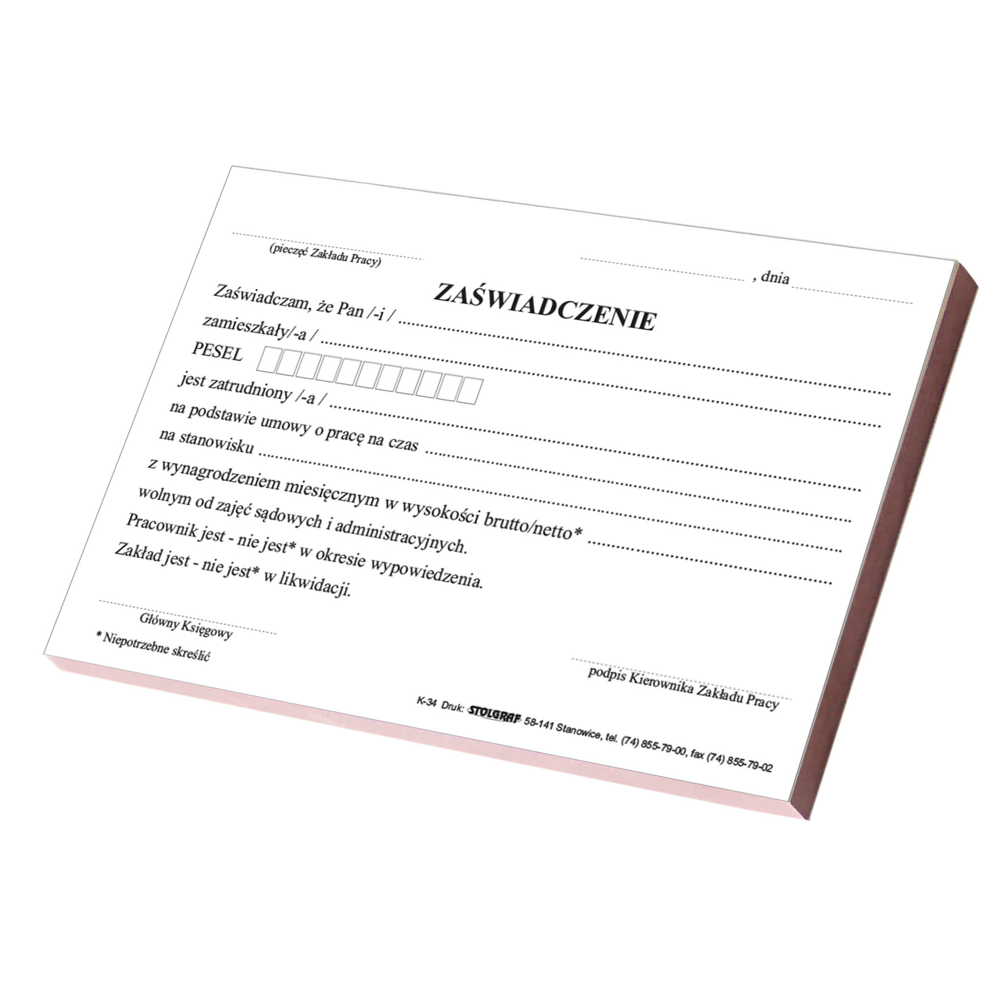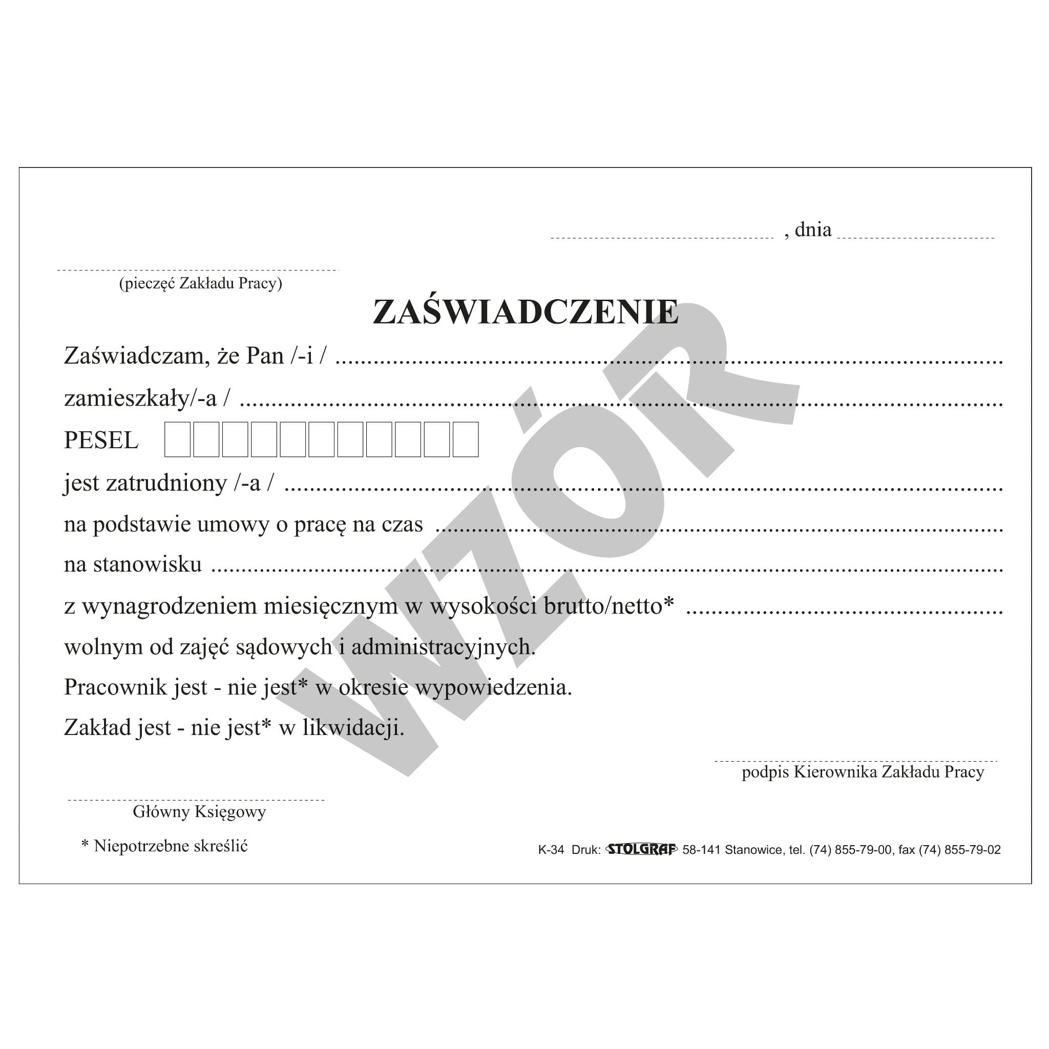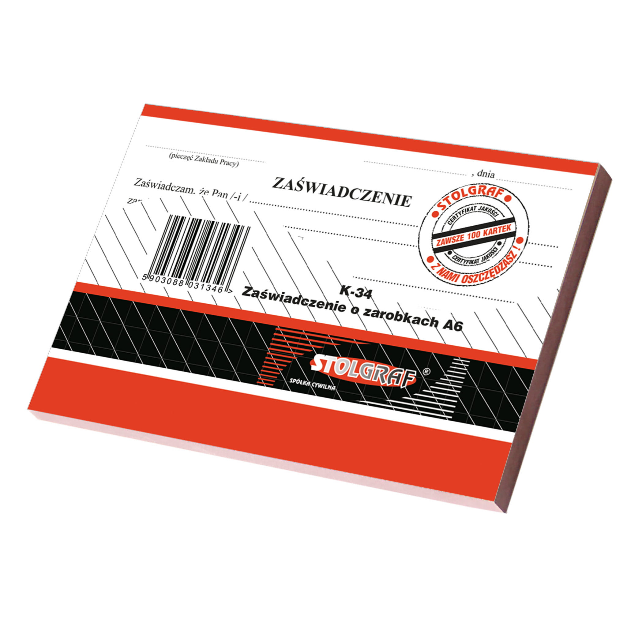K-34 Zaświadczenie o zarobkach A6 - STOLGRAF