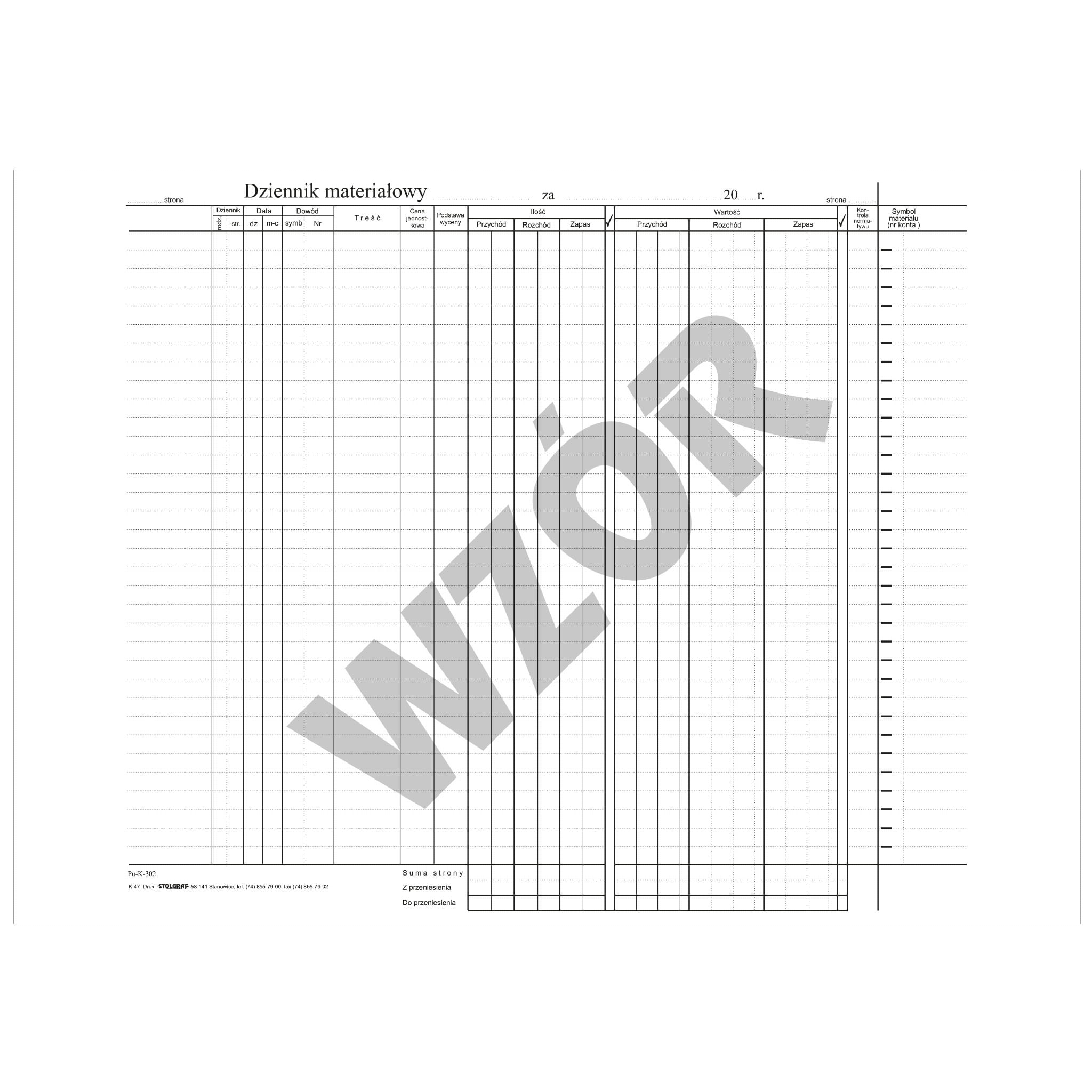 K-47 Dziennik przebitkowy materiałowy K 302 A3 - STOLGRAF