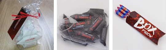 3. pudełko typu poduszka z nadrukiem (wchodzi 10 krówek); wielkość pudełka: 213x85x32 mm