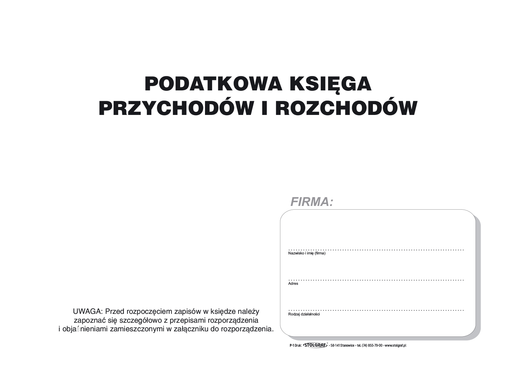 P1 Podatkowa księga przychodów i rozchodów - STOLGRAF (Dz.U. 2025 poz. 1299)