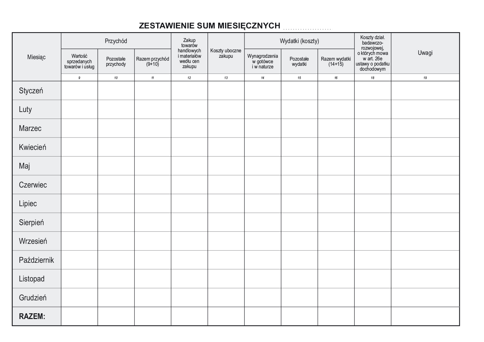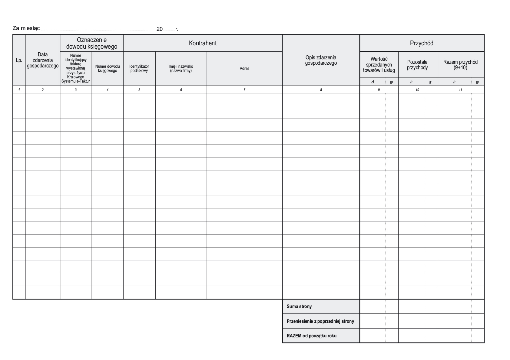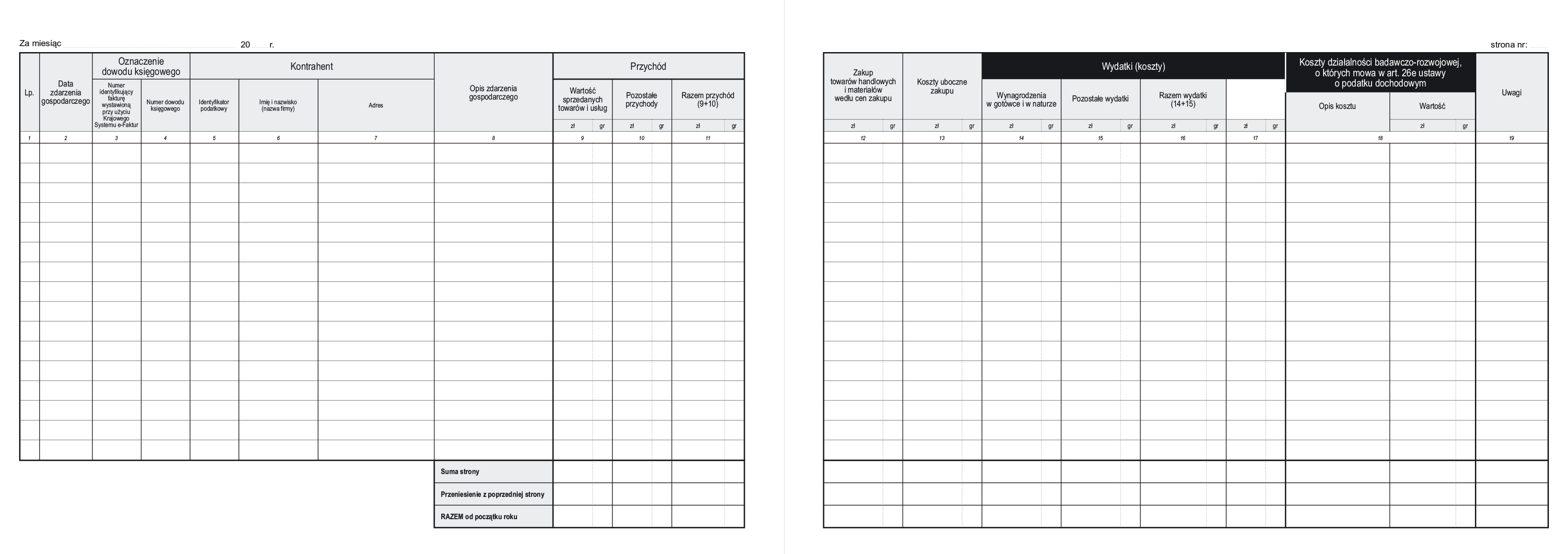 Podatkowa księga przychodów i rozchodów A4 pozioma (Dz.U. 2025 poz. 1299)