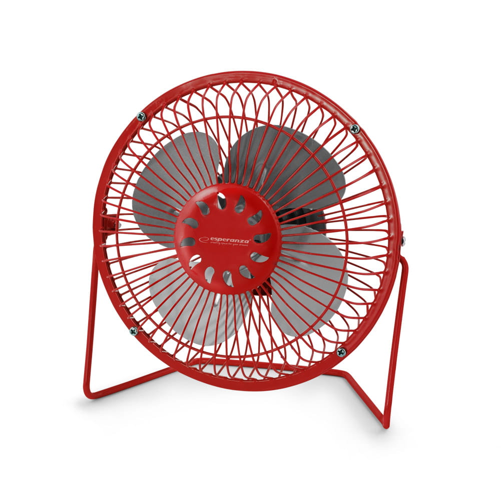 Cichy, wydajny, przenośny wentylator chłodzący zasilany przez port USB. Można go podłączyć do komputera wyposażonego w złącze USB, do ładowarki USB lub power banku. Metalowe łopatki wentylatora gwarantują dużą trwałość i odporność na uszkodzenia. Posiada wbudowany wyłącznik, dzięki czemu nie trzeba za każdym razem odłączać i podłączać go od portu USB. Regulacja kąta nachylenia pozwala na ustawienie go optymalnie do swoich potrzeb. Stabilna podstawka została wyposażona w gumowe, tłumiące drgania nakładki.