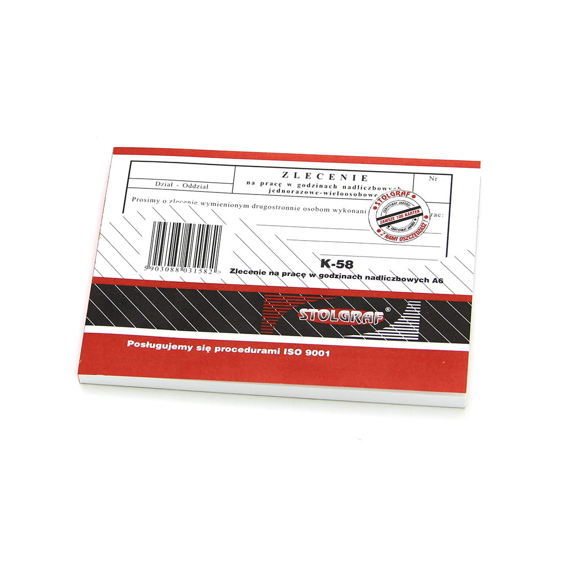 K-58 DRUK Zlecenie Na Pracę w Godzinach Nadliczbowych A6 100 Kartek - STOLGRAF